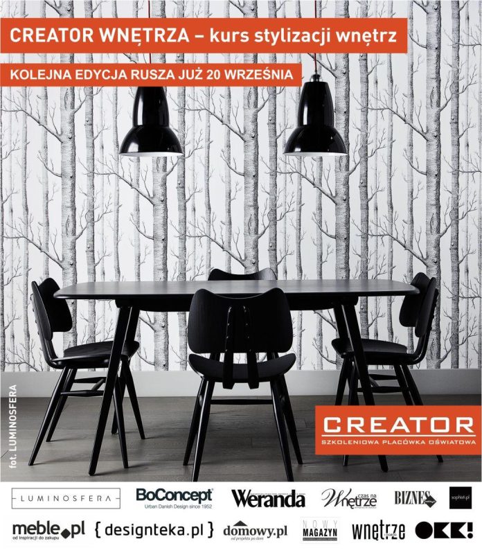 CREATOR, organizator takich kursów jak DESIGN WE WNĘTRZU czy PROJEKTOWANIE WNĘTRZ zaprasza do wzięcia udziału w wyjątkowym, jedynym kursie stylizacji wnętrz – CREATOR WNĘTRZA. Kolejna edycja rusza już 20 września 2014 – zapisy trwają. (www.creator.net.pl)