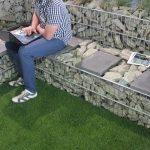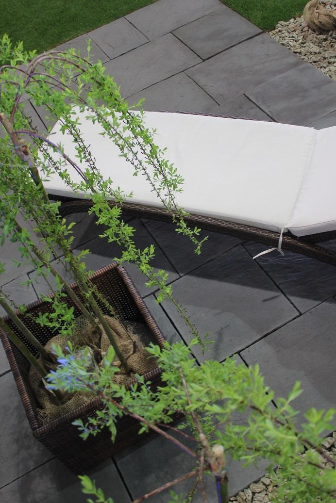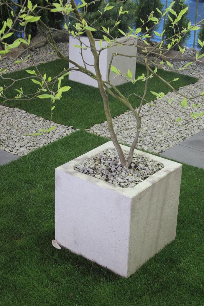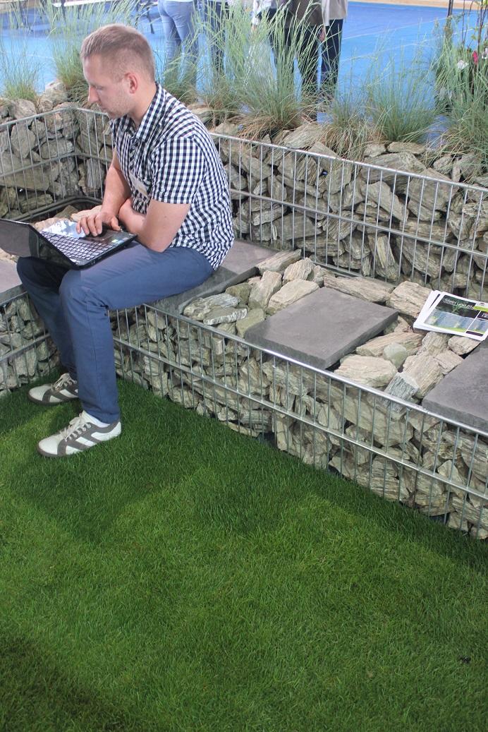 – W tę nowoczesną aranżację idealnie wpisały się donice Stampo. Po raz pierwszy pokazaliśmy również płytę Toscania w nowym kolorze grigio. Została ona użyta nie tylko do wykonania ścieżek oraz nawierzchni patio, ale posłużyła jako efektowne siedzisko w gabionach – wyjaśnia Cezary Tyliński.