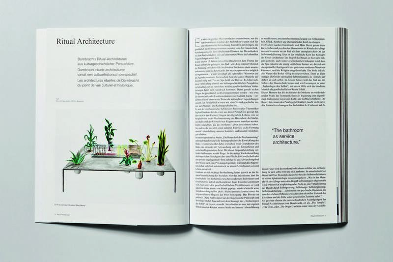 W najnowszym wydaniu „the SPIRIT of WATER” 2012 firma Dornbracht prezentuje nową koncepcję swojej publikacji: Nowy layout jest świadomie zredukowany i minimalistyczny. Trzy rubryki publikacji „Architecture”, „Design” i „Culture” odzwierciedlają trzy filary marki Dornbracht.