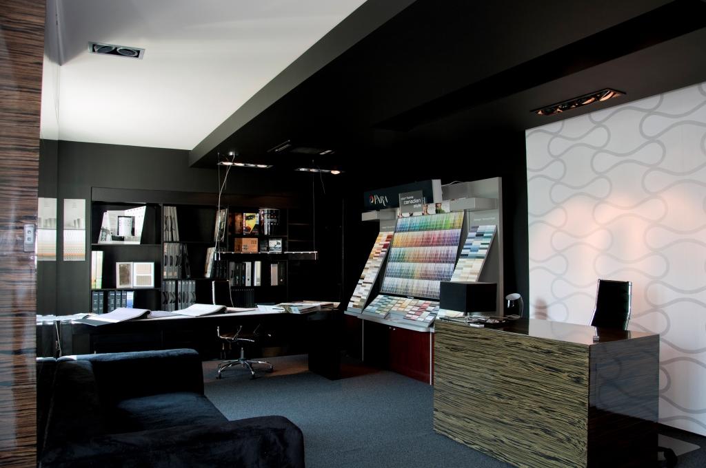 Wnętrze Showroomu Dekorian w Gdańsku zachwyca przemyślaną i elegancką realizacją, inspiruje i pobudza wyobraźnię. Punktem kulminacyjnym jest duży, czarny blat stanowiący idealne tło dla przymierzania wzorników oraz nanoszenia poprawek na projekty. Jest to stanowisko pracy dla architektów i projektantów wnętrz, którzy chcą zaznajomić swoich klientów z próbnikami. Możliwość obcowania z produktami sprawia, że stanowi doskonałe uzupełnienie pracy w domu i biurze.