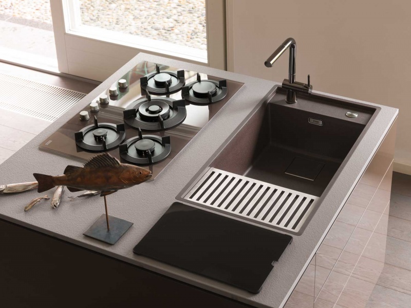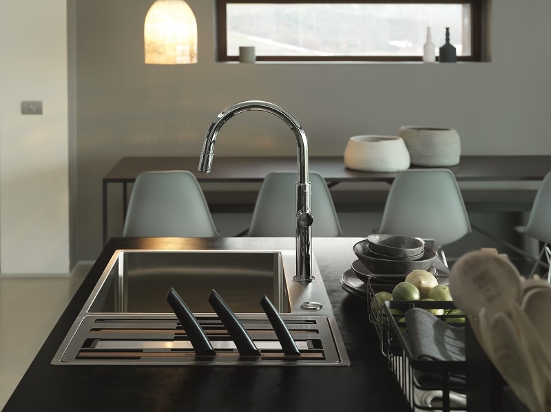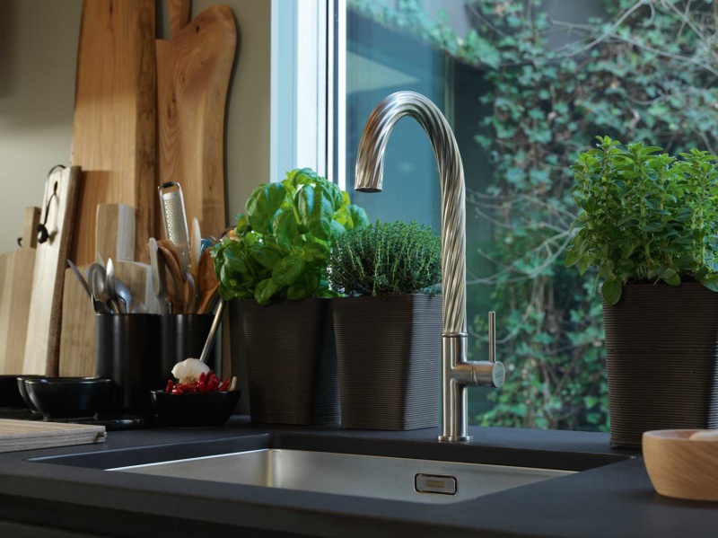 Franke przedstawi w Mediolanie efektowną interpretację linii urządzeń kuchennych Maris, zaprojektowaną przez Drora Benshetritta, współpracującego z marką od ubiegłego roku. Szklana tafla okapu ściennego zyskała bardzo wyrazisty front, podobnie jak pokrętła piekarnika czy żeliwne ruszty nowej płyty grzewczej. Specjalne żłobienia wylewki baterii kuchennej Maris nawiązują w bardzo oryginalny sposób do dynamiki strumienia wody.