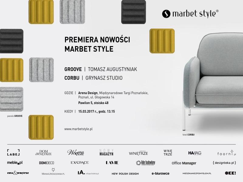 Marbet Style zaprasza na oficjalną premierę kolekcji mebli wypoczynkowych CORBU według projektu Grynasz Studio oraz paneli akustycznych GROOVE zaprojektowanych przez Tomasza Augustyniaka. Zostaną one zaprezentowane podczas Targów Arena DESIGN w Poznaniu 15 marca 2017 r. Obie kolekcje są nominowane do TOP DESIGN award 2017.
