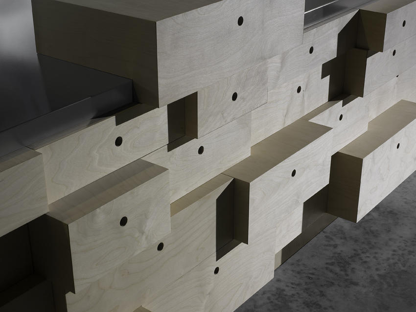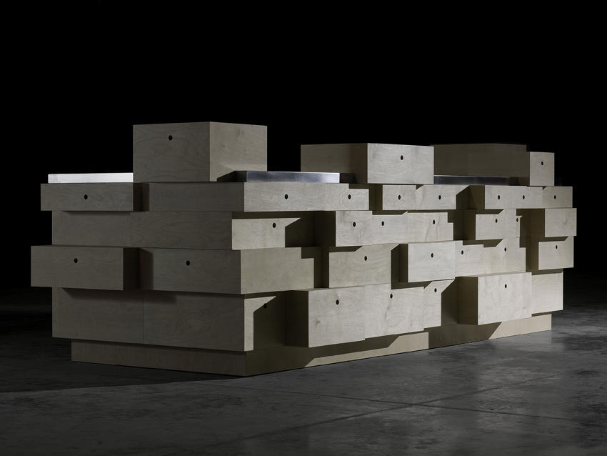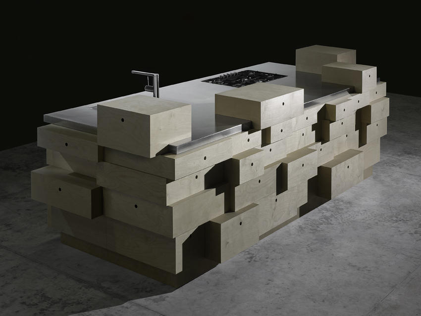 Nierównomierna przestrzenna bryła kuchni jest dziełem niemieckiej projektantki Gitty Gschwendtner, która inspirowała się architekturą dekonstruktywistyczną lat 80. Prototyp kuchni pokazany został w trakcie Salone del Mobile 2010, na zorganizowanej przez magazyn „Wallpaper” wystawie „Homemade”. W kwietniu 2014 roku kuchnia trafiła do sprzedaży. Wyspa kuchenna zbudowana jest na bazie trzech wielkości szuflad, które połączone zostały w przypadkowy sposób. Fronty posiadają wykończenie z drewna brzozowego i białego laminatu, a stalowy blat przechodzi w zlewozmywak i płytę gazową. Zamontowane z trzech stron wyspy szuflady mogą być wysuwane jednocześnie. W wyspie znajdują się również szafki. Model zaprojektowany został z przeznaczeniem do dużych kuchni otwierających się na salon. W trakcie targów Drawer pokazany został w showroomie marki przy via Visconti di Modrone 12.
