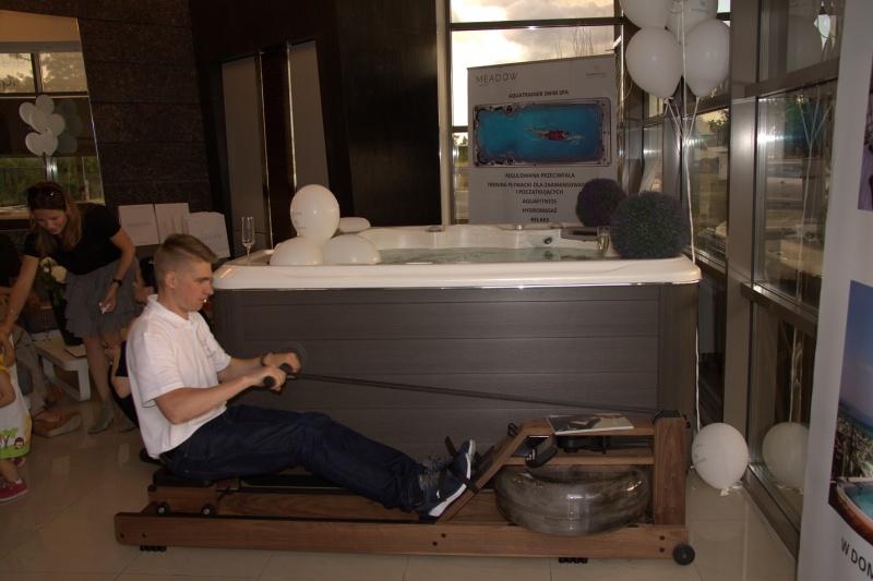 Wielkie otwarcie nowego salonu było świetną szansą, aby przetestować trzy modele naszych mini basenów kanadyjskiej marki Hydropool, ale nie tylko. Prezentowaliśmy także piękne meble ogrodowe firmy House&more oraz sprzęt do fitnessu amerykańskiej marki LifeFitness, który dołączył do naszej stałej oferty i niebawem pojawi się na naszej stronie internetowej. Do klientów, którzy zdecydowali się na zakup jednego z naszych mini basenów marki Hydropool trafi elegancki, wykonany z drewna orzechowego, WaterRower, zwany potocznie „Wioślarzem”, który harmonijnie komponuje się z wnętrzem każdego domu. Podczas tych trzech dni odwiedziło nas sporo zaproszonych gości, jak również przechodniów, których uwagę przyciągnął nasz nowy banner oraz nasze ekskluzywne produkty. W naszym showroom’ie pojawiły się także dwie ikony fitnessu oraz zdrowego stylu życia: Mariola Bojarska Ferenc i Małgorzata Włodarczyk, jak również dwóch projektantów mody, Łukasz Jemioł oraz Tomasz Ossoliński. Wśród zaproszonych byli też mieszkańcy pięknego osiedla na Wilanowie Villa Natura.