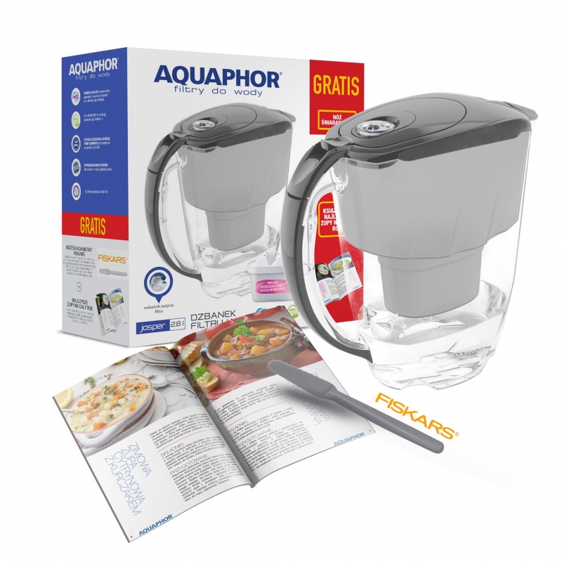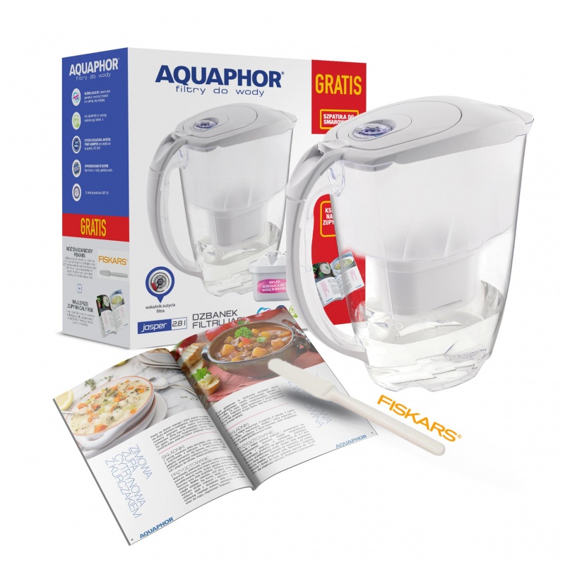 Od 11 października w promocyjnej cenie 29,99 zł można kupić w sieci sklepów Biedronka dzbanki filtrujące wodę Aquaphor w zestawie z silikonową szpatułką Fiskars i książką z przepisami na najlepsze zupy na cały rok. Dzięki interesującemu zestawowi nie tylko ugotujemy na zdrowej, świeżo przefiltrowanej, wolnej od wszelkich zanieczyszczeń i nasyconej dobroczynnymi jonami magnezu wodzie, ale również możemy się zainspirować. Książka kulinarna z zupami to bowiem moc inspiracji na jesienne zupy rozgrzewające. Szpatułka do smarowania marki Fiskars, która z pewnością przyda się w kuchni to dodatkowy profit kuszącego zestawu.