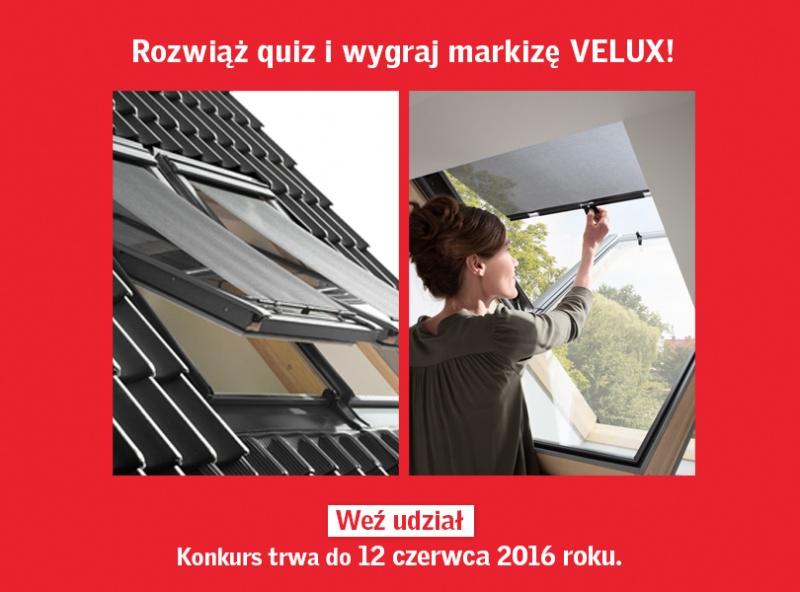 Atrakcyjny konkurs na Facebooku firmy VELUX. Do wygrania markiza VELUX MHL. Aby wziąć udział w zabawie wystarczy rozwiązać krótki quiz na temat rolet to okien dachowych VELUX.M