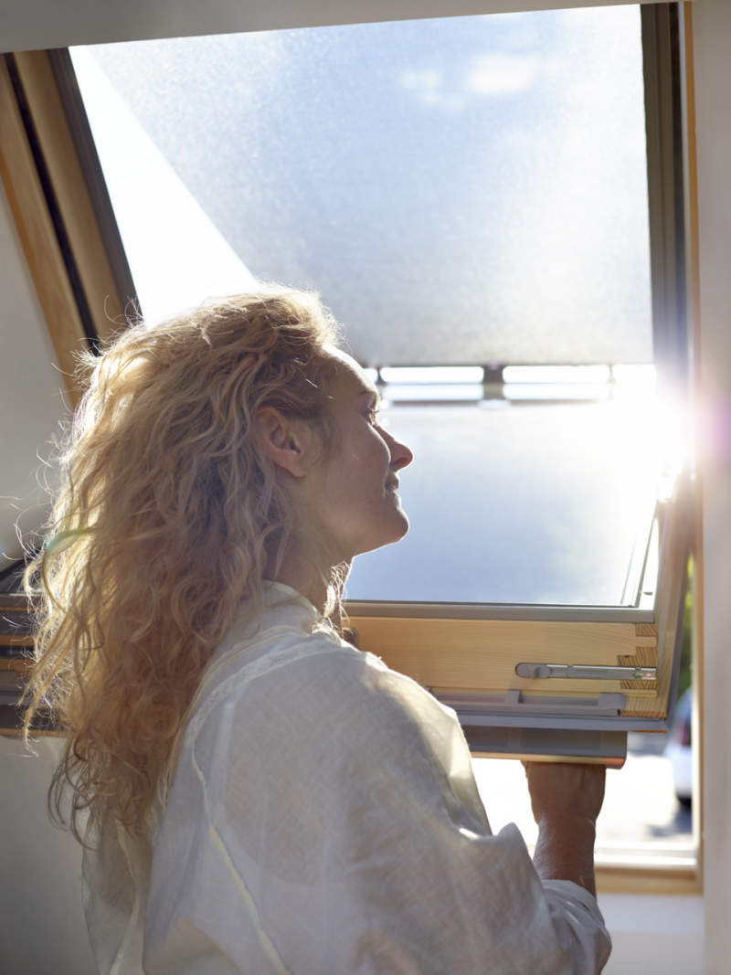 Markiza VELUX znacząco wpływa na komfort korzystania z poddasza latem – redukuje ilość wpadającego ciepła nawet o 72%* i zmniejsza temperaturę wewnątrz pomieszczenia nawet o 5%*. Co ważne, nie ogranicza widoku za oknem i dostępu do światła.
