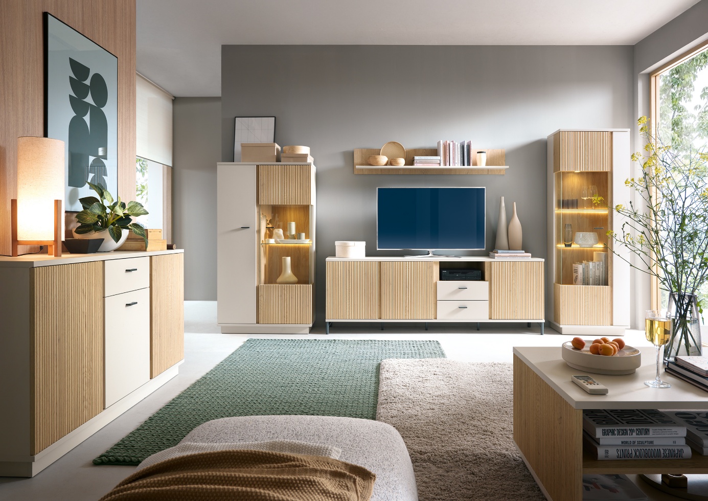 Podczas Black Friday warto skupić się na meblach, które poprawiają wygodę codziennego korzystania z domowych przestrzeni. W salonie najczęściej są to komody, witryny i szafki RTV. Modele w dekorze dębu wprowadzają naturalne ciepło, natomiast kaszmirowe maty i delikatne ryflowania dodają wnętrzu nowoczesnego charakteru. Jeśli cenisz dopracowane detale, zwróć uwagę na kolekcję Cut Out – boczne i frontowe przeszklenia nadają bryłom lekkość, a wbudowane oświetlenie tworzy subtelny akcent, który świetnie wygląda wieczorami.