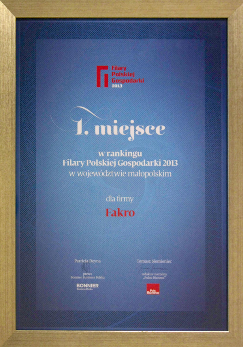 Tytuł Filaru Polskiej Gospodarki zobowiązuje firmę FAKRO do dalszej pracy i rozwoju. Nie byłoby tego wyróżnienia bez klientów, którzy wybierają produkty FAKRO, bez partnerów handlowych, którzy wspólnie budują wiarygodność i pozycję marki FAKRO na rynku polskim i światowym jak również bez pracowników, którzy wnoszą wkład w rozwój firmy. Wszystkim serdecznie dziękujemy.