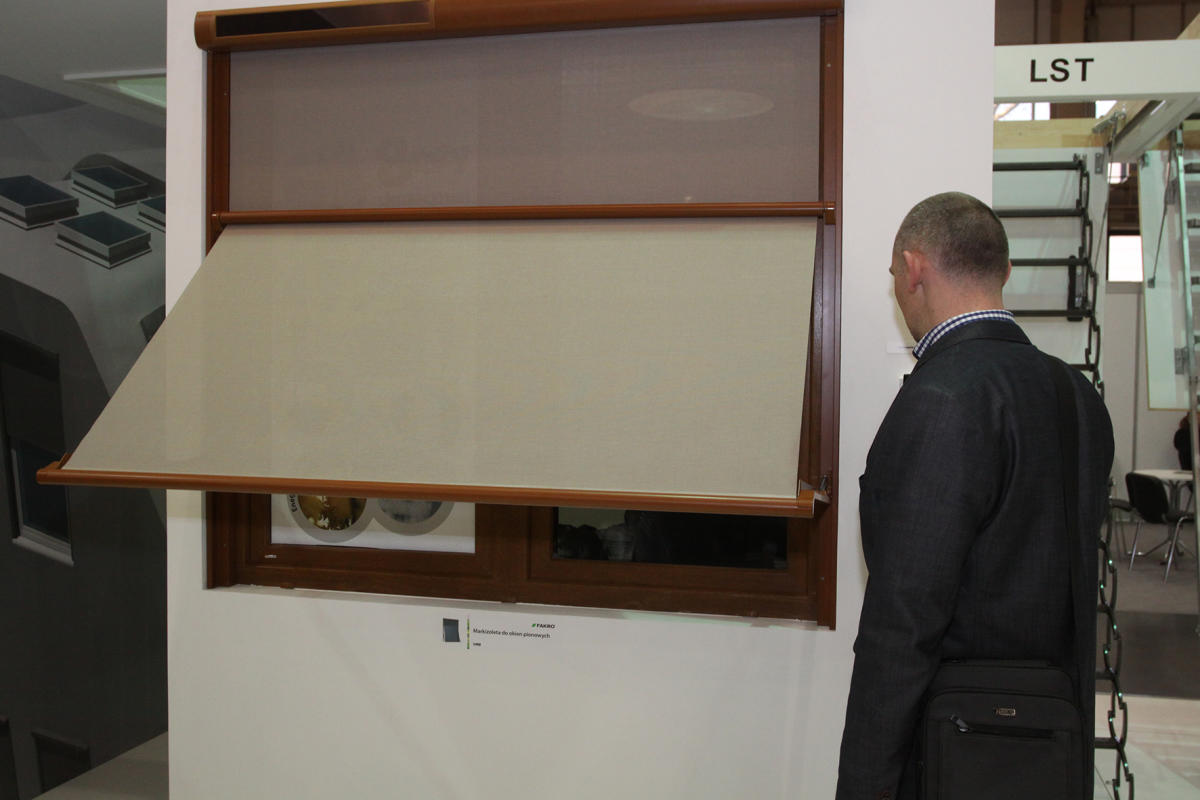 Szczególnym zainteresowaniem cieszyły się zupełnie nowe, zdalnie sterowane zewnętrzne markizy oraz markizolety solarne do okien pionowych. Goście stoiska FAKRO mogli samodzielnie sprawdzić ich działanie przy użyciu pilota oraz przekonać się o ich wielu zaletach. Poza ochroną przed nagrzewaniem pomieszczeń w lecie struktura materiału umożliwia napływ naturalnego światła do pomieszczenia oraz utrzymanie kontaktu wzrokowego z otoczeniem.