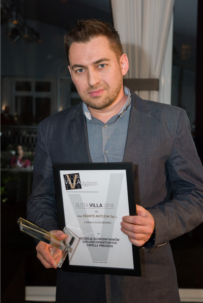 Nagrodę dla zlewozmywaka Capella Precious odebrał jego projektant, Michał Łój, Product Design Manager w Deante.