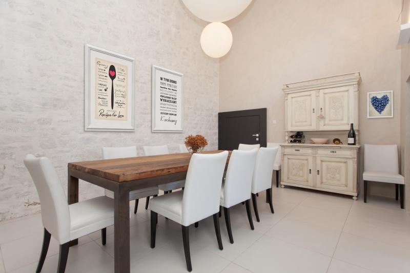 Osobom poszukującym swojego prawdziwego stylu lub obawiającym się wnętrzarskich eksperymentów w kuchni, może spodobać się propozycja pod hasłem „klasyka elegancji i duet dwóch uniwersalnych kolorów”. Czerń i biel daje się bardzo łatwo oswoić, zestawiać z wieloma kolorami, tworząc różnorodne warianty. Czarne fronty mebli lub blaty oraz czarne sprzęty AGD fantastycznie komponują się z ceglaną białą okładziną (lub tzw. sztucznym kamieniem). To ponadczasowe, wciąż modne i bezpieczne zestawienie dla mniej zdecydowanych osób, które rozpoczynają drogę „na swoim” i mimo wszystko pragną, by ich kuchnia posiadała intrygujące oblicze wnętrza. Dobrą opcją jest tzw. personalizacja poprzez udekorowanie ściany typograficznymi mądrościami, z którymi właściciel utożsamia się najmocniej. Mogą to być plakaty z napisami, oprawione w ramę obrazki przedstawiające ulubione destynacje czy zawieszone na ścianie litery 3D. Jeśli wiercenie i niszczenie ściany nie wchodzi w grę, wszystkie ozdoby równie dobrze zaprezentują się na gotowych półkach na dekoracje, oparte o ścianę, o blat lub o parapet. Drugą propozycją dla aranżacji białej ceglanej ściany w kuchni są eleganckie i wyważone martwe natury przedstawiające włoskie przysmaki lub obrazy w stylu prowansalskim z bukietami lawendy. Tak wysublimowana w swej prostocie dekoracja cegły, stanowiąc element wystroju nowoczesnej kuchni, dostarczy odbiorcy wielu niezapomnianych doznań wzrokowych.