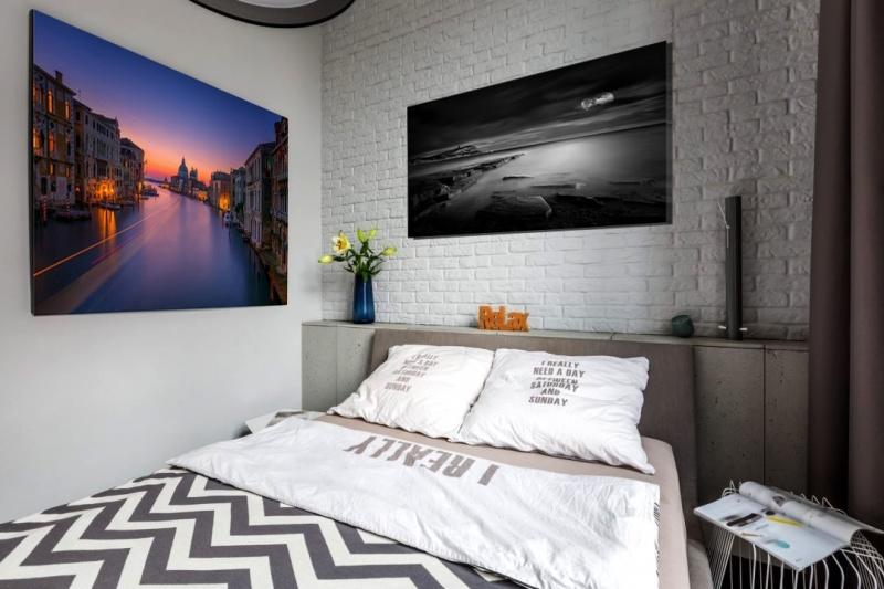Nie całkiem szara eminencja – upiększamy ściany sypialni w szarej cegle