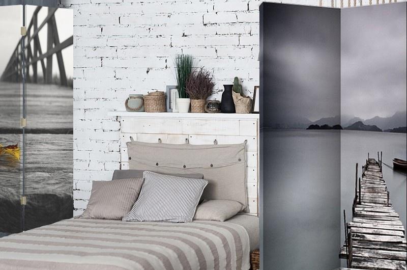 Gdy ceglana ściana za łóżkiem, z różnych przyczyn, daleka jest od doskonałości i brakuje jej wszystkiego za wyjątkiem krzywizn, załamań, wnęk i wybrzuszeń, posłuż się np. parawanem dekoracyjnym, zamiast zwykłego zagłówka. To rodzaj tymczasowego rozwiązania awaryjnego, którego zadaniem jest uatrakcyjniać ścianę, współgrać z jej teksturą, nie zaś eksponować jej wady. Niektóre z tych ścianek działowych wyposażone są w system zawiasów obrotowych, co daje możliwość wyginania ich skrzydeł we wszystkich kierunkach, np. okalając wnękę łóżka, zakrywając krzywy pion komina wentylacyjnego. Szukając odpowiedniego dodatku dekoracyjnego dla szarej cegły, warto pamiętać, iż w poczet najlepiej współpracujących z nią barw wchodzą wszelkie zielenie, pomarańcze i czerwienie. Przełamując monotonność barwy gamą ciepłych lub intensywnych, zimnych kolorów, zyskamy atrakcyjną całość pożądaną z perspektywy wizualnego odbioru wnętrza.