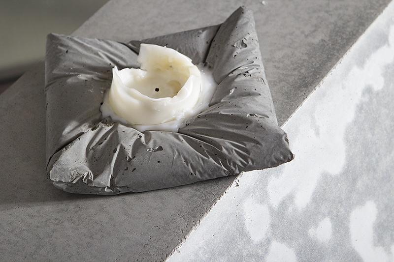 Betonowa poduszka? Brzmi absurdalnie, ale nie dla projektantów Morgan & Möller, którzy postanowili, przewrotnie, przełamać skojarzenia miękkiej tkaniny i wygodnego łóżka, zestawiając kształt poduszki z trwałą mieszanką betonu. Świecznik Pillow jest nie tylko ciekawy, ale także funkcjonalny. Wgłębienie, które imituje odgniecenie na poduszce, uniemożliwia przelanie się wosku na mebel czy parapet. Jego pozostałości, które osadziły się wokół świecy, łatwo można usunąć podważając nożem.