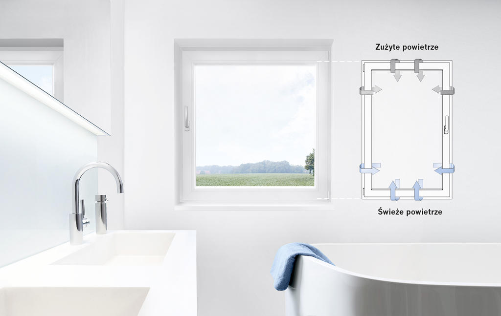 Wykorzystanie innego, innowacyjnego systemu okuć Winkhaus pozwala na bezpieczne wietrzenie pomieszczeń. W wyposażonych w nie oknach możliwe jest odsunięcie skrzydła od ramy w taki sposób, że na całym obwodzie powstaje szczelina o szerokości około 6 mm. Stalowe zaczepy montowane w obwodzie ramy skutecznie utrudniają wyważenie skrzydła z ościeżnicy tak w pozycji zamkniętej, jak i podczas wietrzenia.