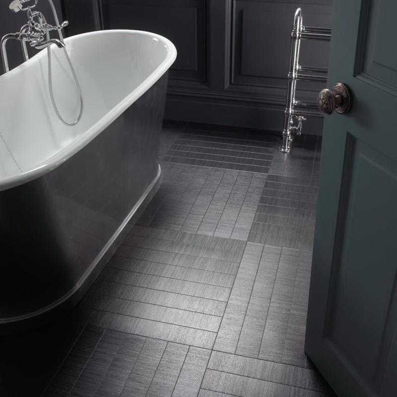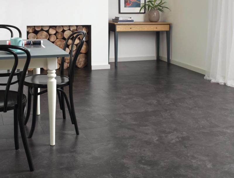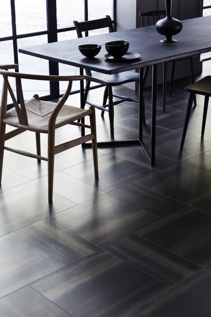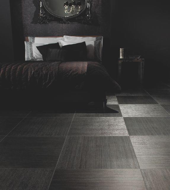 Użycie czerni powinno być uzależnione od kubatury pomieszczenia. Uwagę warto zwrócić na rozmieszczenie światła. Nie powinno się zbyt mocno zaciemniać niewielkich przestrzeni. Chyba, że mowa o nieprzytłaczającej podłodze. Może być interesującym tłem eksponującym oryginalne meble, ciekawe dodatki i rośliny. Czerń wprowadzać można stopniowo – zaczynając np. od jednego pomieszczenia. Idealnie wkomponuje się w wytworny salon w stylu glamour. Tutaj postawić można na czarną podłogę o eleganckim charakterze i niezaprzeczalnej jakości. Angielska firma Amtico, której przedstawicielem na polskim rynku jest Carpet Studio, ma w swojej ofercie panele winylowe, które dodadzą szyku każdej aranżacji. Idealnie sprawdzi się tu podłoga Ink Wash Wood czy Chroma Black. Zarówno imitujące drewniane, jak i kamienne panele ułożone w jodełkę polubią się z kryształowym żyrandolem czy designerskim szezlongiem. Bardzo glamour!