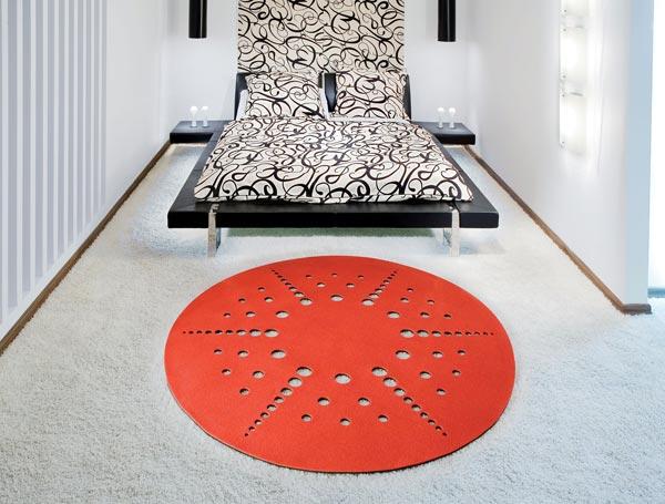 Bogata wyobraźnia projektanta – Witolda Więckowskiego, i szerokie możliwości obróbki materiału złożyły się na dywan CIRCLES (Ø 170 cm, wys.: 6 mm). Jego efektowny ażurowy wzór uzyskano właśnie dzięki zastosowaniu sukna. Może być ono cięte w dowolny niemal sposób bez szkody dla trwałości i jakości. Intrygujący wzór dywanu CIRCLES doskonale wpisuje się w filozofię mówiącą, że czasem mniej znaczy więcej. Oryginalny design CIRCLES doceniło m.in. jury konkursu Dobry Wzór – dywan znalazł się w gronie finalistów tegorocznego konkursu organizowanego przez Instytut Wzornictwa Polskiego.