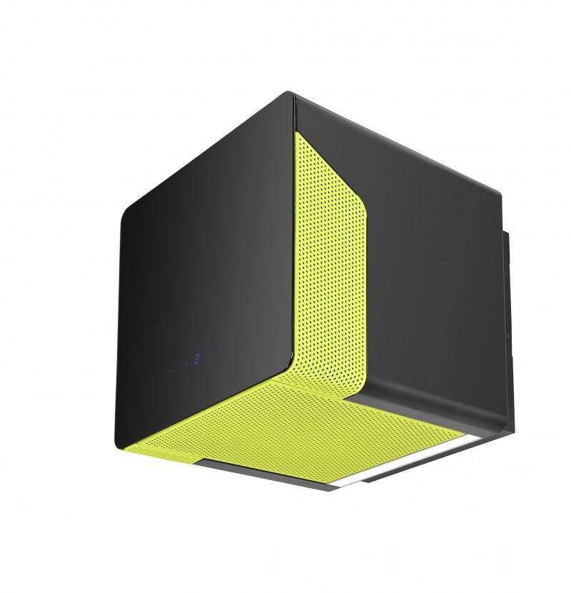 Cube Neon to urządzenie zaprojektowane w formie kostki, które wpisuje się wystrój nowoczesnej kuchni, inspirowanej zarówno popartem, jak i stylem hi-tech. Model wykonany z wysokiej jakości aluminium i szkła dekoracyjnego wyróżnia się geometryczną formą i odważną kolorystyką. Oryginalny wzór podkreślony został charakterystyczną kratką na obudowie i neonową barwą poszczególnych elementów. Cube Neon wyposażony jest w komorę pośrednią pochłaniania – innowacyjny system zwiększający skuteczność zasysania oparów. Dzięki temu, pracując już na drugim biegu, pochłania i filtruje opary z przednich palników. W ciągu godziny jest w stanie oczyścić aż 600 m3 powietrza. Głośność pracy przy takiej wydajności to zaledwie 52 dBA. Efektowne oświetlenie LED, timer i intuicyjne sterowanie za pomocą panelu dotykowego lub smartfona wpływają na komfort pracy użytkownika. Okap dostępny jest w 3 wersjach kolorystycznych (żółtej, pomarańczowej, inox).