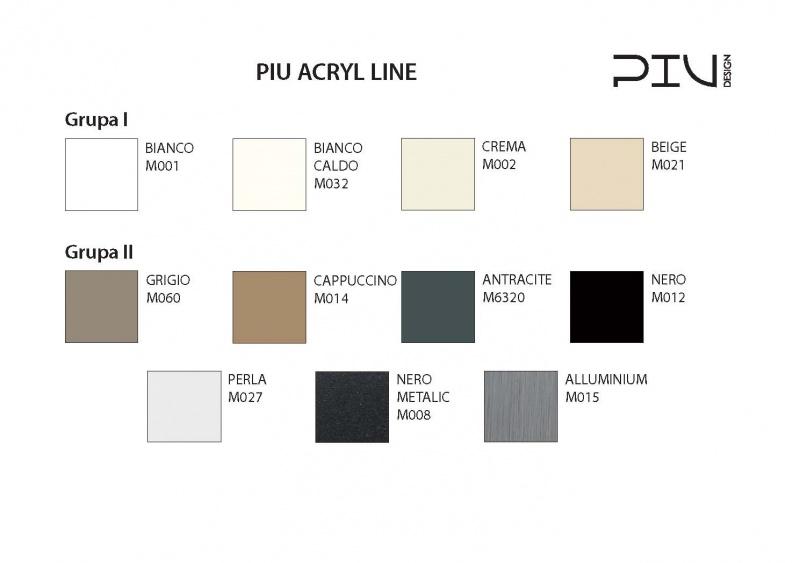 Autorska technologia PIU Design pozwala na idealne zlicowanie drzwi z powierzchnią ściany. System drzwi PIU Acryl składa się z ościeżnicy aluminiowej o wielokomorowym profilu oraz skrzydła drewnianego. Niewidoczne są wszystkie elementy uzupełniające, w tym zawiasy regulowane w trzech płaszczyznach i zamek magnetyczny. Wybór akrylu, jako wykończenia dla drzwi z linii PIU Acryl Line, nie jest przypadkowy. To ultranowoczesny materiał, który coraz częściej stosowany jest w aranżacji wnętrz. Powłoka akrylowa nadaje powierzchniom niezwykłą głębię koloru. W przeciwieństwie do powłok lakierowanych jest ona odporna na promienie UV, co ma szczególne znaczenie zwłaszcza przy białych drzwiach lub innych jasnych kolorach. Drzwi z linii PIU Acryl zachowają głębie i intensywność koloru przez długie lata. Akryl to również zdecydowanie większe bezpieczeństwo użytkowania oraz wyższa odporność powłoki drzwi na uderzenia i zarysowania. Ma to szczególne znaczenie we wnętrzach, w których przebywają dzieci. Na uwagę zasługuje fakt, że w produkcji drzwi PIU Design stosuje się najwyższej klasy akryl z Włoch, który w porównaniu z jego tradycyjnym odpowiednikiem jest twardszy, o 30% grubszy, ma niezmienny w czasie kolor i większą odporność na zarysowania.