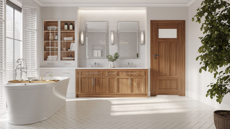 Nestor to także ponad 20 wariantów kolorystycznych. Drzwi malowane występują w pięciu ponadczasowych, stonowanych barwach, które pasują do niemal każdego wnętrza. Modele w okleinie można zamówić zarówno w bardziej odważnych kolorach, jak czerń czy oliwka, jak i w ponadczasowych, drewnopodobnych dekorach w technologii DRE-Cell i 3D, takich jak dąb klasyczny, orzech ciemny czy złoty dąb. Dzięki temu z łatwością drzwi można dopasować do zabudowy kuchennej, podłogi lub listew przypodłogowych – zachowując spójność stylistyczną wnętrza.