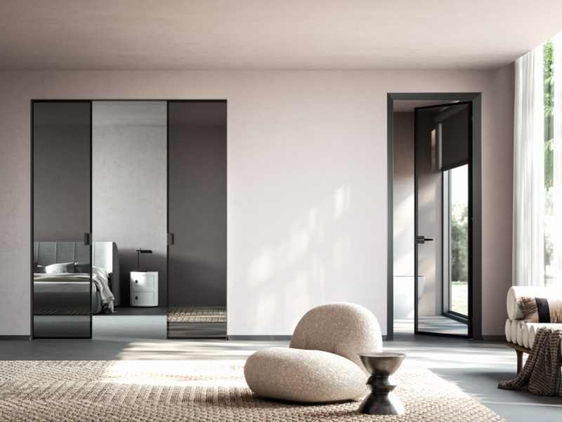 Styl wnętrza: Do minimalistycznych, nowoczesnych przestrzeni idealnie pasują drzwi malowane w kolorze ściany lub z lustrzanym wykończeniem.
