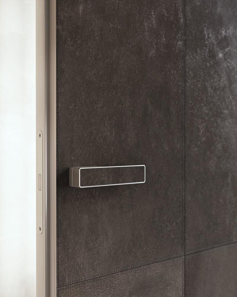 Projektant zadbał o godny materiał wykończeniowy, który odpowiednio podkreśli elegancję drzwi PIU Design. Tomasz Augustyniak postawił na naturalną skórę z holenderskiej manufaktury Alphenberg, która wyróżnia się niepowtarzalnym charakterem. Naturalna skóra jest jednym z najbardziej ekskluzywnych materiałów wykorzystywanych w modzie, designie i aranżacji wnętrz. Drzwi (ale również ściany) pokryte skórą, wykończone aluminium anodowanym lub szczotkowanym to elegancja i bezpretensjonalny szyk we wnętrzu. Drzwi MODERN lub GRAF z serii Aluminium Line Skóra mogą stać się samodzielną ozdobą wnętrza lub ukrytym elementem ściany całkowicie wykończonej skórą w jednym z odcieni zastosowanych na drzwiach. Projekty Tomasza Augustyniaka stanowią bardzo uniwersalną propozycję zarówno dla nowoczesnych przestrzeni, loftów jak i wnętrz klasycyzujących.