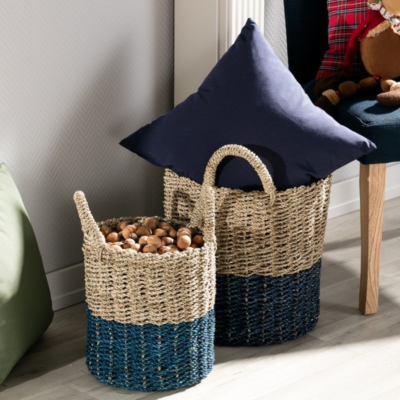 Jeśli z urlopu przywozisz raczej produkty spożywcze, np. cukierki, kawę, herbatę, włóż je do ceramicznego pojemnika z wzorem w marokańskie płytki. Z kolei lekkie szale i letnie pledy przechowuj w koszach wykonanych z materiałów kojarzących się z latem – np. trawy morskiej lub rafii (palmy bambusowej)