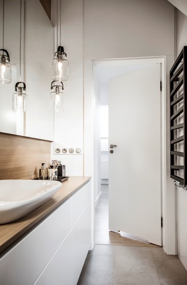Proste rozwiązania są często najlepszym i zarazem najbardziej efektownym wyborem w wykończeniu pomieszczeń. Aby uzyskać harmonijne, emanujące spokojem wnętrze, warto postawić na duety klasycznych barw oraz oszczędne formy elementów wystroju. Pełne skrzydła z kolekcji Porta DECOR będą zatem idealnie zamykać utrzymaną w takim tonie kompozycję, emanując delikatnością bieli. Zespolą one aranżację łazienki swoją kolorystyką i minimalistyczną formą oraz wyeksponują piękny, drewniany blat czy czerń industrialnych dodatków.
