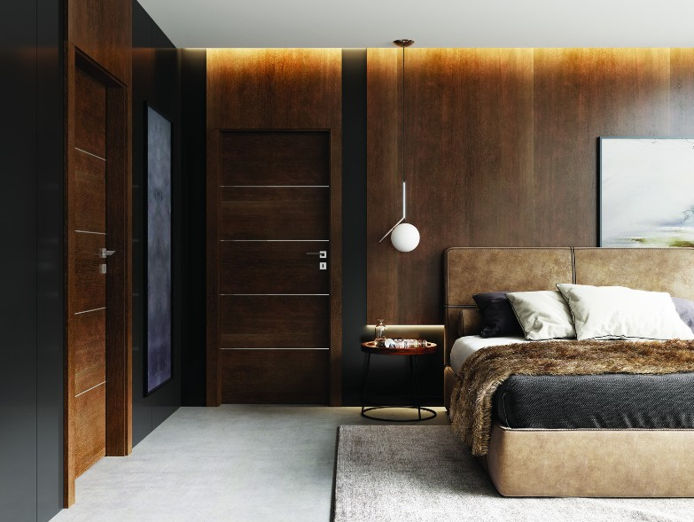 Ściany ubrane w drewno od podłogi aż po sufit to odważny, a jednocześnie niezwykle efektowny wnętrzarski trick. Takie rozwiązanie wprowadzi do pomieszczenia szykowną elegancję, która będzie cieszyć oko latami. Wkomponowane w całość fornirowane skrzydła z kolekcji Natura LINE będą stylowym dopełnieniem drewnianej kompozycji, a delikatny rysunek intarsji ozdobi pomieszczenie. Istotnym elementem całości są również dekoracje – warto zainwestować w futrzane tekstylia, które dodadzą wnętrzu klasy.