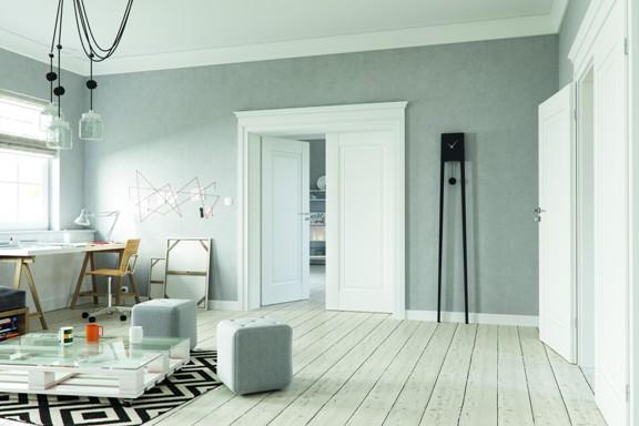 Klasyczne wzornictwo doskonale sprawdzi się w nowoczesnym wystroju, dodając odrobiny smaku do minimalistycznego wnętrza. Stonowana kolorystyka ścian i powściągliwa bryła mebli sprawia, że białe drzwi Porta INSPIRE z bogato zdobioną ościeżnicą Villadora RETRO będą wyraźnym elementem wyróżniającym całego pomieszczenia, dodającym szyku i nietuzinkowego charakteru.