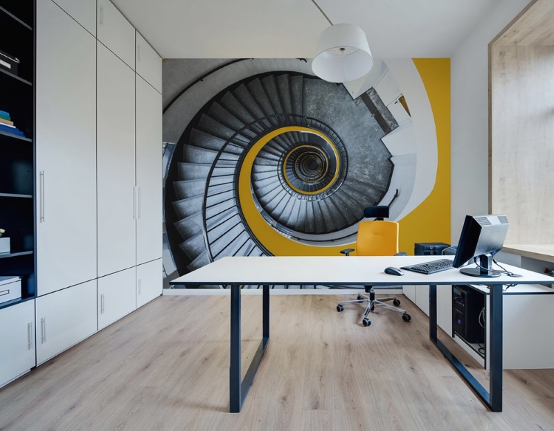 Małe biuro to problem, na szczęście problem, który da się rozwiązać niekoniecznie zmieniając lokalizację. Małe powierzchnie można optycznie powiększyć. Jednym ze sposobów jest wykorzystanie siły kolorów, które potrafią działać cuda w zakresie optycznych iluzji we wnętrzach. Jasne kolory na ścianie powiększą przestrzeń, ciemne zmniejszą. Równie ważne są kontrasty: krótkie i długie pomieszczenie stanie się bardziej proporcjonalne, jeśli jego krótsze ściany pokryjemy ciemniejszym kolorem, natomiast niskiemu dodamy optycznie kilka centymetrów, malując sufit na jaśniejszy niż ściany kolor. W małych wnętrzach doskonale sprawdzą się również fototapety – jako ich centralny element będą się świetnie komponować z oszczędnym wyposażeniem. Zatem jakie wybrać wzory, aby pomieszczenie, w którym znajdzie się fototapeta, zostało optycznie powiększone?