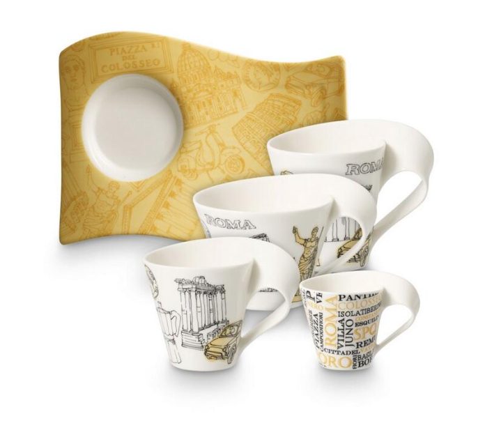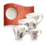 New Wave The Citites of Europe to gratka dla kolekcjonerów – stworzona z wysokiej jakości porcelany, zawiera filiżanki do espresso, café au lait i dwie filiżanki o różnej pojemności (0,25 l. i 35 l.), wraz z odpowiadającymi im spodkami. Kolekcje charakteryzują wygodne uchwyty, dzięki którym popijanie kawy stanie się jeszcze przyjemniejsze!
