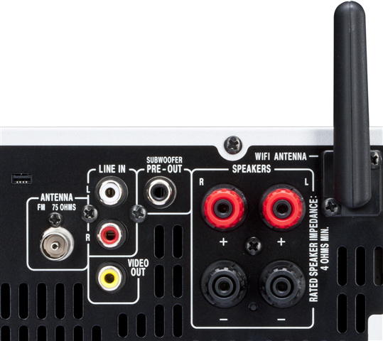 Solidne, zakręcane gniazda do podłączania przewodów głośnikowych (o średnicy maks 2,5 mm) z mozliwością podłączenia wtyków bananowych zapewniają najlepsze połączenie z głośnikami, a wzmacniacz o wysokiej mocy 2 x 50 W RMS gwarantuje właściwą siłę brzmienia. Nie można również zapominać o tekstylnych głośnikach wysokotonowych o średnicy 2,5 cm oraz 12-cm głośnikach niskotonowych i kanałach bass reflex. Dzięki takim rozwiązaniom, odtwarzana muzyka nabierze nowego brzmienia!