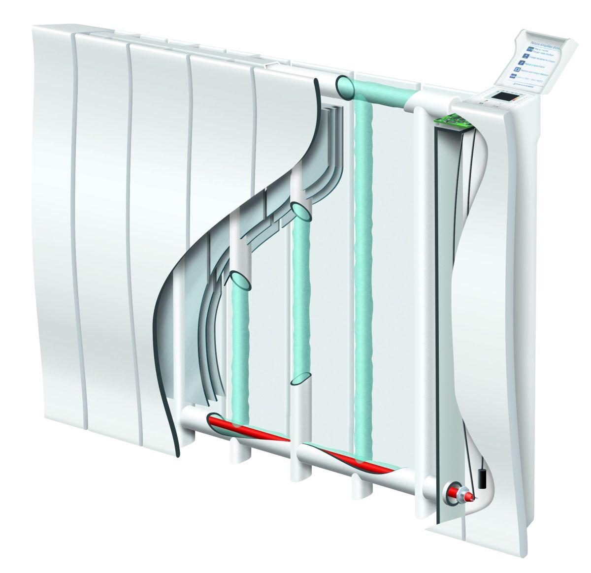 Zwykle radiatory ogrzewają za pomocą żeliwa, jednak na rynku obecny jest radiator, który zawiera płyn grzewczy. Dzięki niemu wytwarza ciepło, które charakterem zbliżone jest do tego z Centralnego Ogrzewania. Na jego budowę składają się białe fale, dzięki którym wtopi się w tło w salonie urządzonym w odcieniach beżu, szarości, ew. z dodatkiem fioletu.