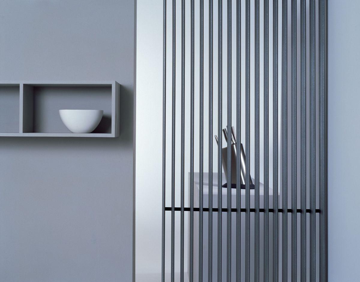 Grzejnik w roli parawanu to atrakcyjne rozwiązanie przestrzenne. W dużej łazience można w ten sposób na przykład wydzielić strefę sanitarną od strefy kąpielowej, natomiast w kuchni jadalnię od części roboczej. Ażurowa konstrukcja grzejnika stworzy ciepłą i estetyczną przegrodę, która – w zależności od ustawienia i kształtu profili grzejnika – może zasłonić mniej lub więcej. Takie rozwiązanie wpłynie korzystnie na emisję ciepła, które będzie rozchodziło się w obydwie strony dzięki odsłonięciu całej powierzchni grzejnika. Tę wizję burzy jedno „ale”, którym z reguły jest dostępność odpowiednich mocowań i długi czas oczekiwania, co zniechęca architektów i klientów. Warto zwrócić uwagę, że są na rynku firmy takie jak Jaga, dla których ponadstandardowe rozwiązania są standardem. W ofercie belgijskiego producenta znajduje się kilka modeli grzejników, m.in. Deco Space, Deco Panel oraz Sani Ronda, Sani Panel i Sani Louvre, które w standardzie proponowane są w wersji prostopadle montowanej do ściany. Grzejniki oferowane w palecie kilkudziesięciu atrakcyjnych kolorów, i szerokiej gamie rozmiarów, dostępne są w wersji z jednym rzędem profili lub z dwoma. To istotna informacja gdy chcemy wykorzystać grzejnik jako ściankę działową czy parawan, gdyż pojedynczy grzejnik będzie przegrodą bardziej transparentną.