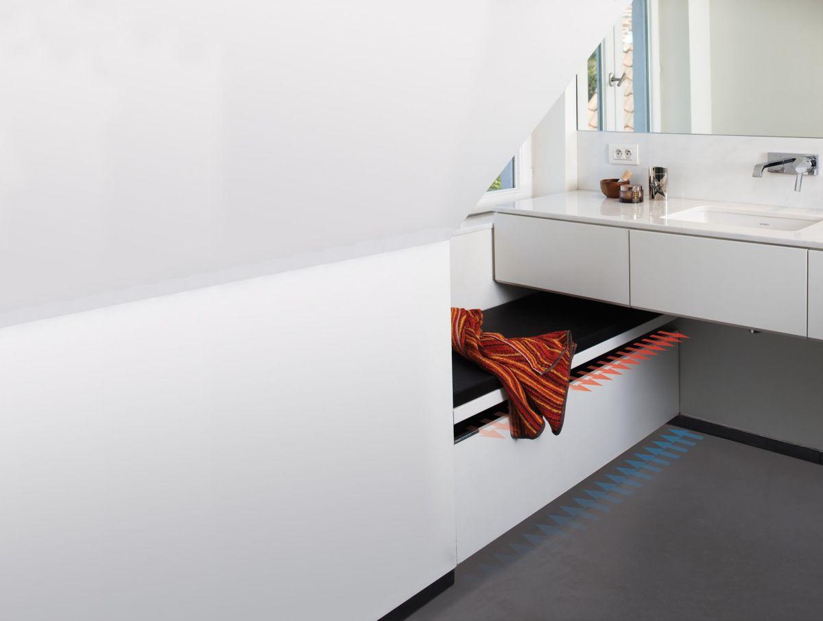 Zoryginalnych rozwiązań proponowanych w standardzie przez firmę Jaga warto zwrócić uwagę na zabudowę grzejnikiem np. wanny czy mebla. Grzejnikwstawiony w szafkę kuchenną oszczędzi miejsce pod oknem, w łazience zaś może służyć na przykład jako zabudowa wanny. Zastosowanie pod wanną ma tę zaletę, że grzejnik będzie dodatkowo ją ocieplał, czyniąc kąpiel jeszcze bardziej komfortową. Grzejnik-zabudowa jest pełnowymiarowym wodnym grzejnikiem z oferty firmy Jaga. Oferowany jest z wydajnym i oszczędnym wymiennikiem działającym w technologii małej pojemności wodnej (Low-H2O). Wysokość grzejnika wynosi 55 cm, długość: 170-190 cm. Na zamówienie możliwe są też inne wymiary.