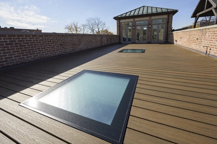 Na płaskim dachu jednego z takich prywatnych domów, właściciele postanowili stworzyć funkcjonalny taras, pod którym mieści się użytkowa garderoba i wygodna łazienka. Aby zapewnić odpowiednie doświetlenie tych pomieszczeń zamontowane zostały dwa okna do dachów płaskich DXW od FAKRO. Montaż okien w suficie pozwolił na zapewnienie dopływu naturalnego światła we wnętrzach i nadał inwestycji nowoczesnego i komfortowego wykończenia. Taras również zyskał. Równe wykończenie posadzki z oknami po których można bez przeszkód chodzić sprawiło, że przestrzeń na tarasie stała się bardzo komfortowa w użytkowaniu.