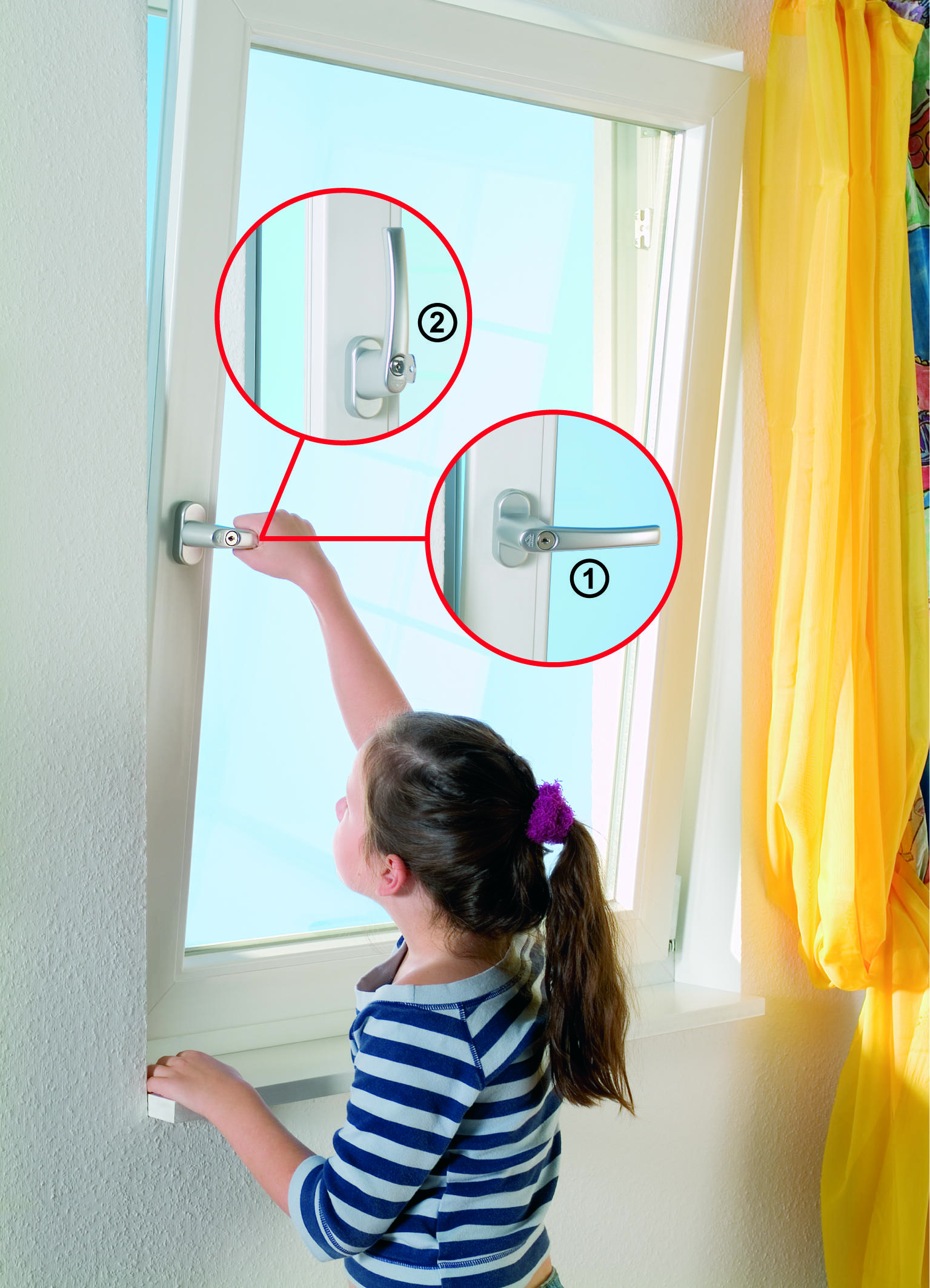 Okna w pokoju dziecięcym najlepiej wyposażyć w mechanizm zabezpieczający Roto „TiltFirst”, który powoduje, że najpierw skrzydło jest uchylane, a nie otwierane. To zupełnie odwrotnie niż w zwykłych okuciach rozwierno-uchylnych. Dodatkowo, specjalna klamka uruchamiająca ten mechanizm jest wyposażona w zamek. Po jej przekręceniu o 90° okno można tylko uchylić, ale nie da się go otworzyć. Dopiero przekręcenie klucza w zamku zwalnia blokadę i pozwala na ustawienie klamki do góry, a tym samym na otwarcie skrzydła. Mechanizm blokujący uruchamia się automatycznie po zamknięciu okna i ponownym przekręceniu klamki do pozycji uchylenia.