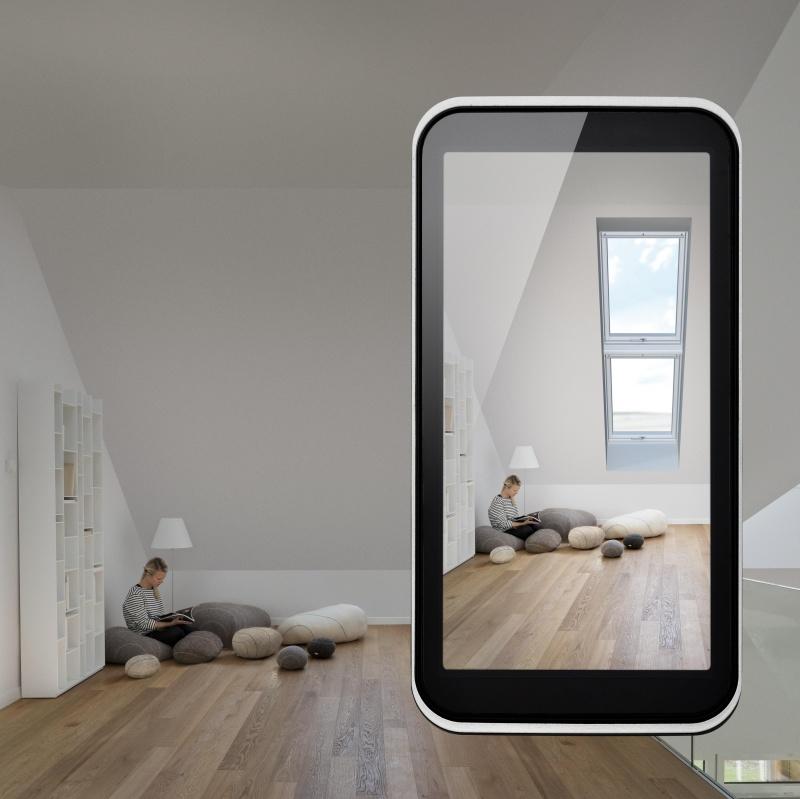 Na rynku istnieją aplikacje na smartfona (np. VELUX Experience), dzięki którym właściciele domów mogą przekonać się, jaką różnicę zapewniłoby dodatkowe światło w pomieszczeniu po zamontowaniu okna dachowego. Wystarczy wybrać okno lub dowolną kombinację kilku okien, wykonać zdjęcie pokoju i zobaczyć, jak wpływają one na doświetlenie wnętrza.