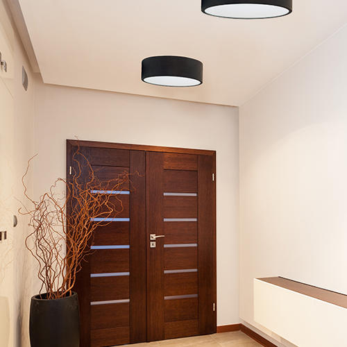 Lampy sufitowe to najpopularniejszy sposób oświetlenia każdego wnętrza. W przedpokoju pięknie wyglądać będą zarówno lampy wiszące jak i halogeny, które od razu dają pełne natężenie światła. Jeśli powierzchnia naszego wnętrza jest niewielka, a jego kształt jest kwadratowy – wystarczy, że zamontujemy jedną lampę w centralnym punkcie. Wąski, ale długi przedpokój najlepiej doświetlić za pomocą 2-3 lamp sufitowych zainstalowanych wzdłuż pomieszczenia. Pozwoli nam to także optycznie powiększyć przestrzeń.