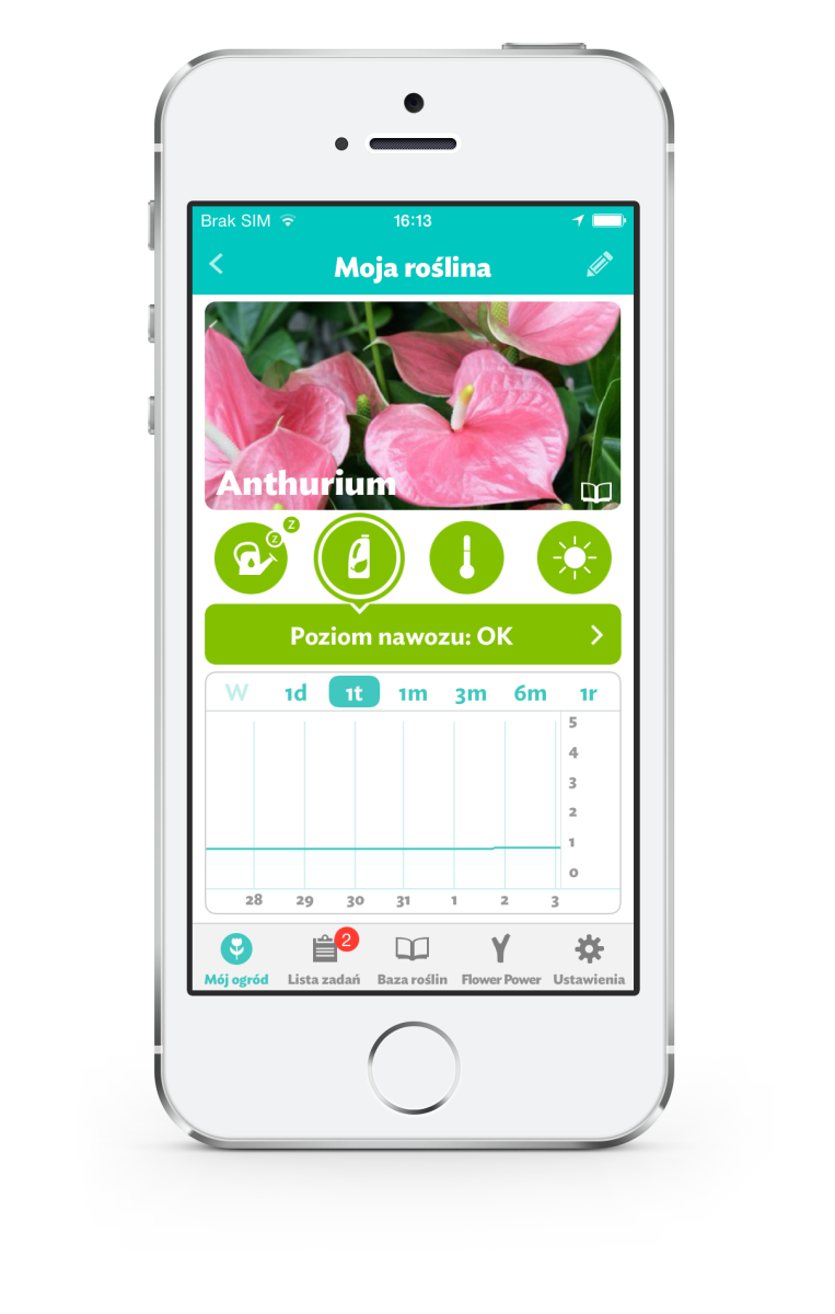 Po uruchomieniu aplikacji, na ekranie smartfona/tabletu ukazuje się Twój „Ogród” – lista wszystkich podłączonych czujników Parrot Flower Power wraz ze zdjęciami roślin przypisanych do każdego z czujników. Widać krótką wizualizację przedstawiającą wszystkie Twoje rośliny i ich potrzeby. „Plan działań” wyszczególnia wszystkie czynności, jakie należy wykonać danego dnia oraz prognozy na najbliższe dni (podlewanie, dodanie nawozu itd.)