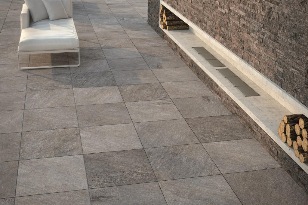 Aristoni to płyta gresowa o nowoczesnym wizerunku i doskonałych parametrach użytkowych. Ma kształt kwadratu, który pozwala na tworzenie geometrycznych układów, a naturalny melanż szarości i delikatnie szorstka struktura upodabniają ją do płyt z kamienia granitowego o szlachetnym wyglądzie. Płyta dostępna jest w dwóch wymiarach 60×60 cm i 90×90 cm, jej grubość to zaledwie 2 cm.
