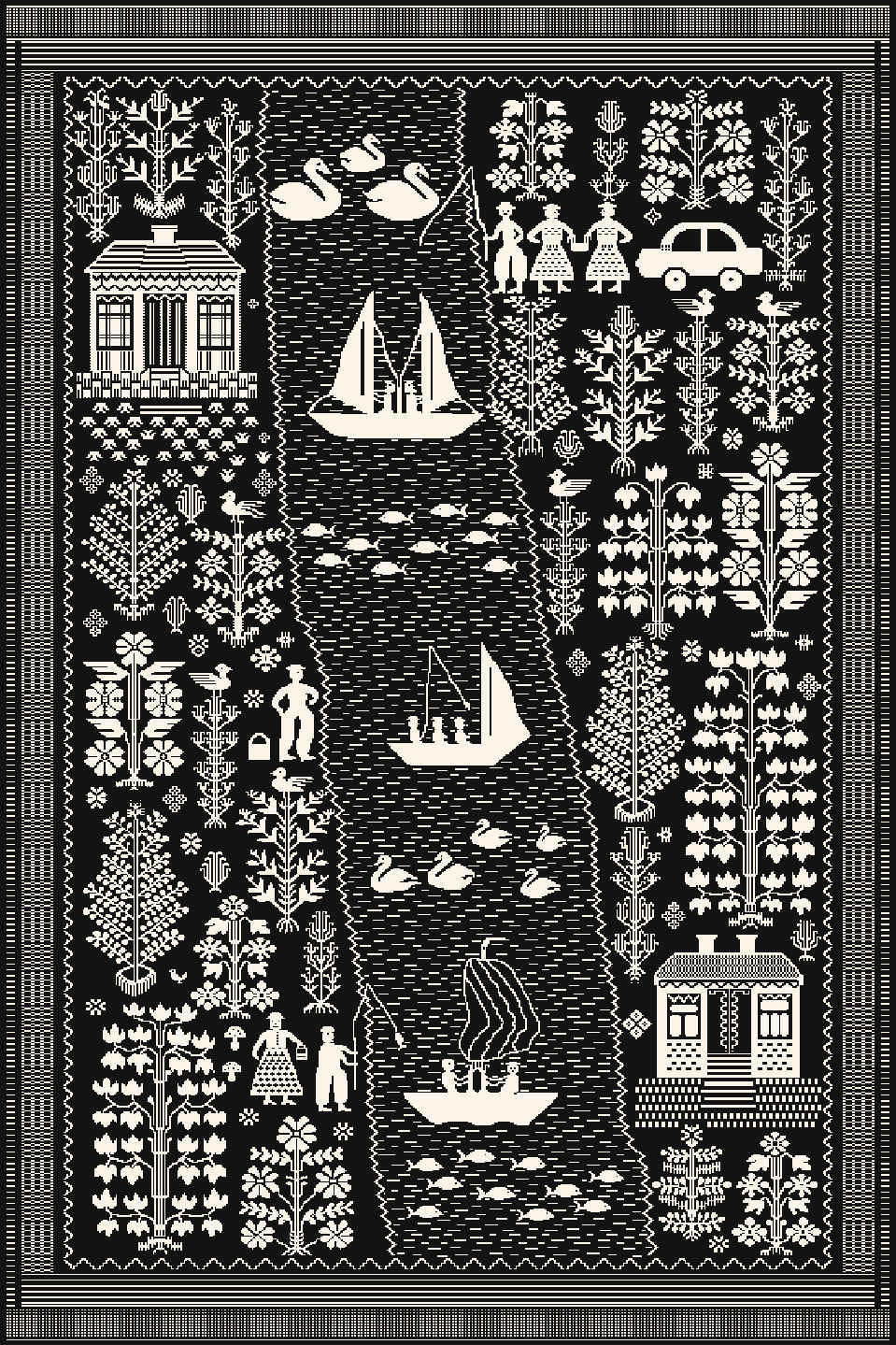 KRASA, OSADA oraz ECHO to dywany, w których kompozycja i ornamentyka wierne są podlaskiej tradycji. Szachownicowy układ, zgeometryzowany sposób przedstawienia świata, charakterystyczne motywy – winnej latorośli, drzewa, palmet, gwiazd, domów, korowodów weselnych i figurek zwierząt oraz klasyczny podział na pole środkowe i ozdobną bordiurę sprawiają wrażenie, że mamy do czynienia z oryginalnymi tkaninami dwuosnowowymi. Ważna jest także kolorystyka tych dywanów oraz naczelna zasada kontrastu, w której z bielą zestawiony jest np. kolor czarny lub grafitowy. Warto też zwrócić uwagę na fakt, że dywany te są wełniane – co stanowi nawiązanie do najstarszych podwójnie tkanych kobierców, które również wytwarzane były z wełny.