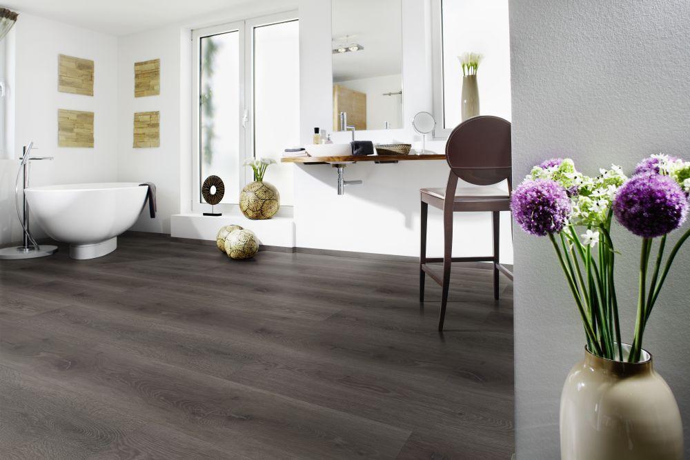 Wysoka odporność na wilgoć sprawia, że podłoga winylowa staje się znakomitym rozwiązaniem do łazienki czy kuchni – pomieszczeń, w których nie sposób uchronić podłogi od wilgoci czy różnych cieczy. Dzięki temu można cieszyć się estetyką drewnianego wykończenia, bez konieczności skrupulatnej i regularnej pielęgnacji powierzchni różnego typu impregnatami. Przy niektórych rodzajach materiałów nawierzchniowych istnieje ryzyko, iż permanentna zmiana poziomu wilgotności bądź wysokości temperatury w pomieszczeniu spowoduje brak stabilności wymiarowej. Przy podłogach winylowych zagrożenie to niemal nie istnieje – dla przykładu produkty marki Wineo wyposażone zostały w matę stabilizującą wymiary, dzięki której rozszerzalność produktu wynosi jedynie 0,05%. Ponadto winylowe nawierzchnie są antypoślizgowe i odporne na plamy oraz zabrudzenia, co również jest niezwykle istotne w takich pomieszczeniach, jak łazienka czy kuchnia. Warto podkreślić, że materiał winylowy jest przyjemny w dotyku i w porównaniu z płytkami ceramicznymi czy naturalnym kamienieniem zdecydowanie cieplejszy. Dzięki elastycznej warstwie wierzchniej tworzy ciepłą i miękką powierzchnię nawet dla bosych stóp. Ponadto ze względu na niski współczynnik oporu ciepła (w przypadku kolekcji Wineo wynoszący tylko 0,033 m² K/W) doskonale nadaje się do montażu na wodne ogrzewanie podłogowe, więc efekt finalny może być jeszcze przyjemniejszy, zwłaszcza dla domatorów domowego ciepła.