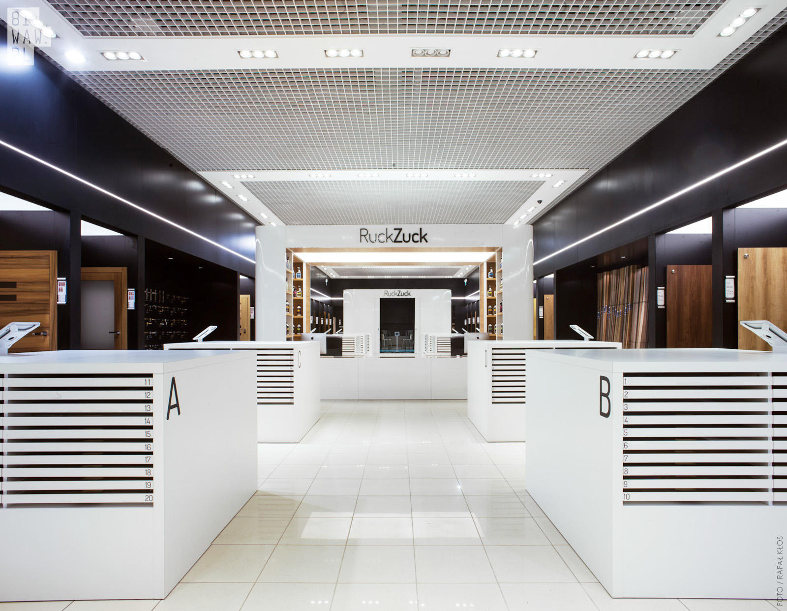 RuckZuck to pierwszy w Polsce multimedialny salon oferujący podłogi i drzwi. Nie tylko interaktywne konfiguratory, stanowiska z iPadami oraz dostęp do aplikacji wnętrzarskich sprawiają, że jest wyjątkowy. To, co go szczególnie wyróżnia to ekskluzywne wnętrze, które zachęca do odwiedzin.