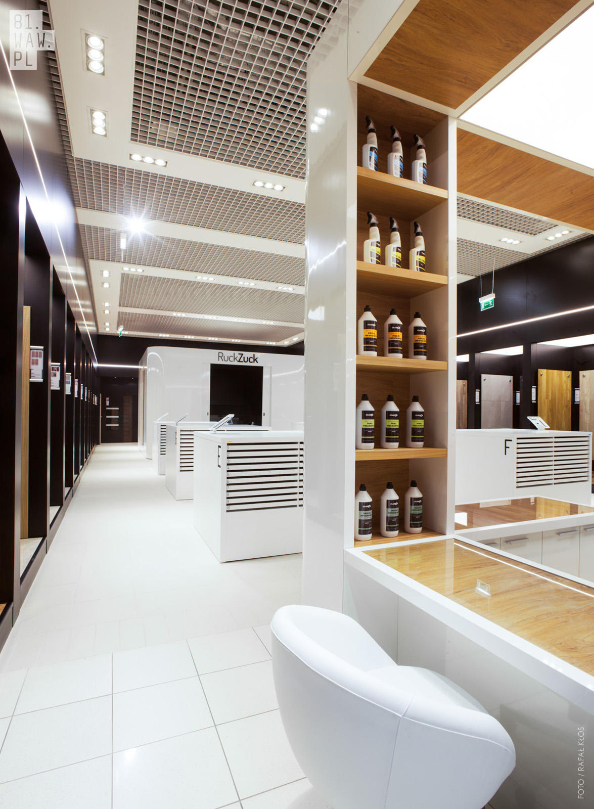 Salon RuckZuck jako pierwszy tego typu multimedialny salon w Polsce wyznacza kierunek, w którym powinny podążać salony oferujące wykończenia wnętrz. Multimedia i możliwość wizualizacji wnętrza to przyszłość branży. Z kolei wystrój i aranżacja salonu to najlepsza wizytówka oferowanych produktów, za czym stoi pracownia architektoniczna 81.WAW.PL.