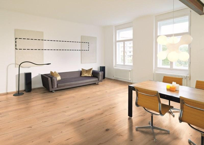SELECT to najbardziej prestiżowa selekcja drewna. W tej grupie znajdują się wyłącznie deski o idealnie jednolitym kolorze, bez sęków i wyraźnych różnic kolorystycznych. Podłoga wykonana z desek SELECT będzie posiadać jednolity wygląd na całej powierzchni oraz regularny, łagodny rysunek słojów. Jest to najwyższa selekcja drewna, co uwidacznia się w jej stosunkowo wysokiej cenie. Selekcja NATUR jest mniej restrykcyjna niż SELECT. Obejmuje ona deski posiadające niewielkie sęki i minimalne różnice kolorystyczne, bez bieli oraz przebarwień. Podłoga z tej selekcji sprawia wrażenie bardzo naturalnej, widoczne są niewielkie różnice między poszczególnymi deskami, wygląda to jednak ciekawie i oryginalnie. RUSTIC natomiast to selekcja, w której deski posiadają ograniczone rozmiarowo sęki oraz wypełnione pęknięcia. Dopuszczalna także jest biel. Selekcja drewna RUSTIC doskonale wpasowuje się we wnętrza rustykalne lub urządzone w stylu vintage. Może także ciekawie przełamywać minimalistyczne aranżacje, stanowiąc najbardziej wyrazisty element wnętrza.