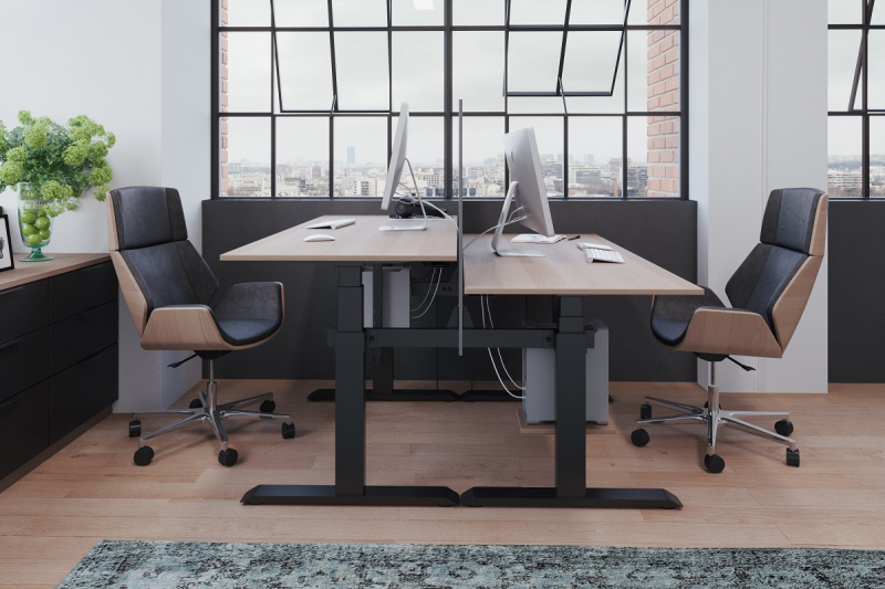 W każdym biurze są chwile gdy pracujemy w zespole – rozmawiamy, konsultujemy, dzielimy się pomysłami… Są też momenty, w których potrzebujemy spokoju, ciszy i przestrzeni do skupienia. Jak stworzyć warunki umożliwiające oba te typy pracy? Dzięki Futuro i to jest bardzo proste. Dzięki łącznikom biurek, możemy w prosty sposób stworzyć przestrzeń do pracy wspólnej. Możemy również na tych samych łącznikach zamocować płyty lub panele akustyczne, które rozgraniczą stanowiska, a w ten sposób stworzą przestrzeń do pracy samodzielnej. Co ważne, niezależnie od łączników i ewentualnych paneli, wysokość blatu każdego z biurek możemy regulować niezależnie od siebie.