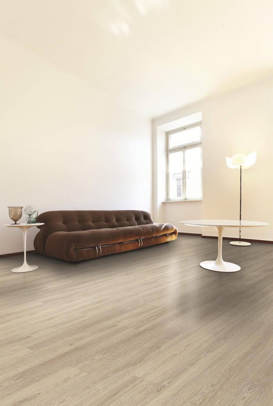 Podłogi Limed Dark Oak i Limed Grey Oak, o powierzchni odwzorowującej drewno dębowe utworzą przestronne, nieco surowe wnętrza, w których świetnie zaprezentują się duże gabloty czy minimalistyczne metalowe meble z niewielką ilością funkcjonalnych elementów dekoracyjnych takich jak np. designerska lampa, czy nawiązujące do niej formą, stoliki, na których znajdą się szklane wazony i misy. Takie podłogi to doskonałe rozwiązanie dla biur i przestrzeni wystawienniczych.